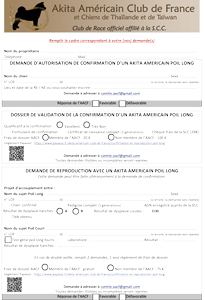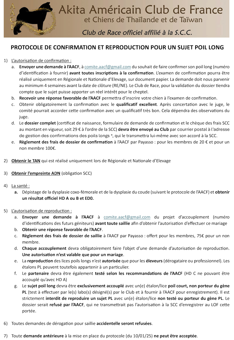 Règlement Payasso : https://www.payasso.fr/akita-americain-club-de-france/confirmation-et-reproduction-poil-long